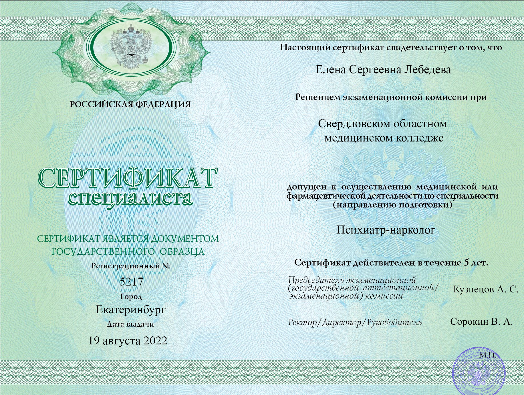 Елена Сергеевна Лебедева врач нарколог клиники доктора Стукаловой в Инском